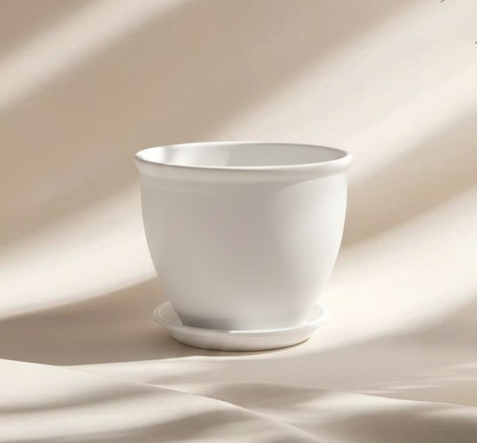 جنس پلاستیک. رنگ سفید. دارای سایز بندی. کیفیت +A . دارای زیرگلدانی هم رنگ
